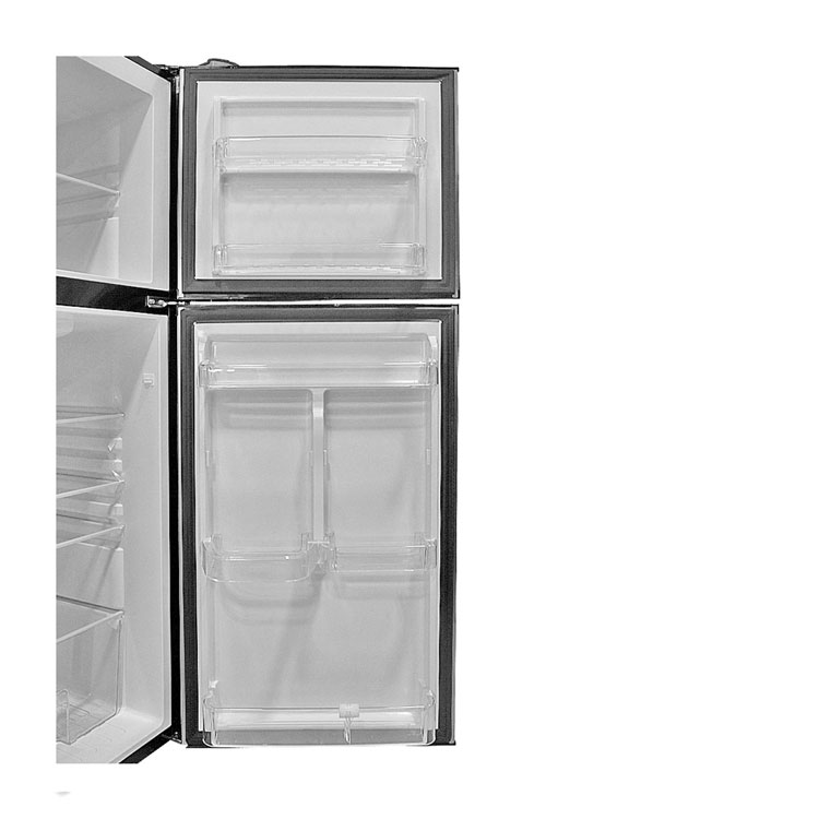 The AXXEL Refrigerator ARFF282 10cf is a reliable and energy-efficient refrigerator designed to meet the cooling and storage needs of modern households. With its sleek design, advanced features, and eco-friendly refrigerant, this refrigerator is the perfect addition to any kitchen, ensuring optimal freshness and cooling for your food items. The AXXEL ARFF282 comes with a 10 cubic feet capacity, making it a great choice for small to medium-sized kitchens, apartments, or offices. Its slim and compact design allows it to fit into tight spaces while still providing ample storage for groceries, beverages, and frozen foods. The refrigerator’s modern aesthetic, with a stainless steel-like finish, is complemented by black handles, giving it a sophisticated look that can seamlessly integrate into any kitchen decor. This refrigerator operates at 120V, 60Hz, consuming minimal energy, making it an excellent choice for energy-conscious households. It is equipped with an efficient 2-watt max LED lamp that lights up the refrigerator’s interior without consuming excessive power. The use of R600a refrigerant further enhances its environmental friendliness, as this refrigerant is known for its low global warming potential (GWP) and ozone depletion potential (ODP). This means that while the refrigerator efficiently keeps your food cool, it does so with minimal impact on the environment.