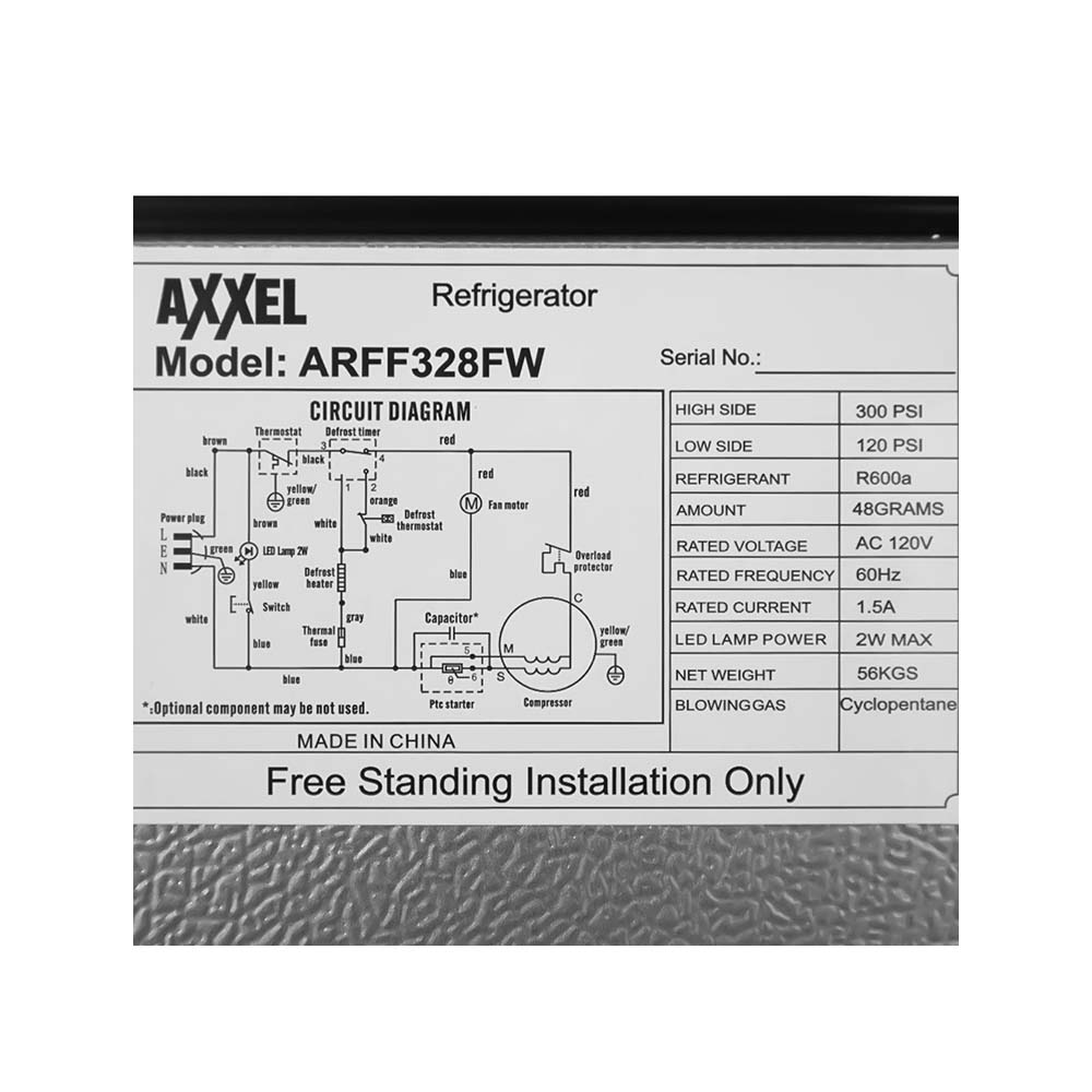 Axxel Refrigerator ARFF328 12cf