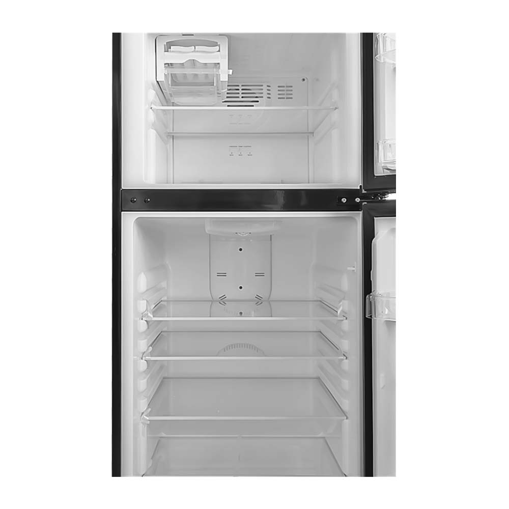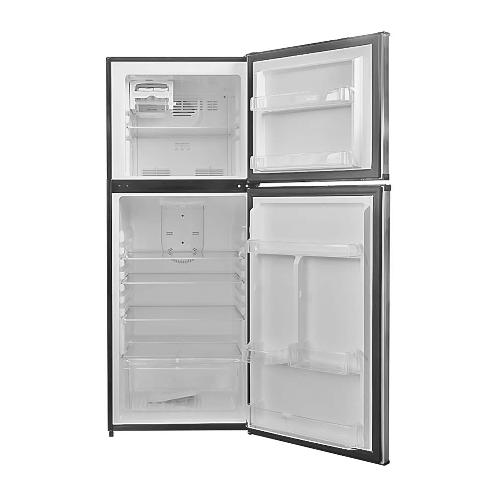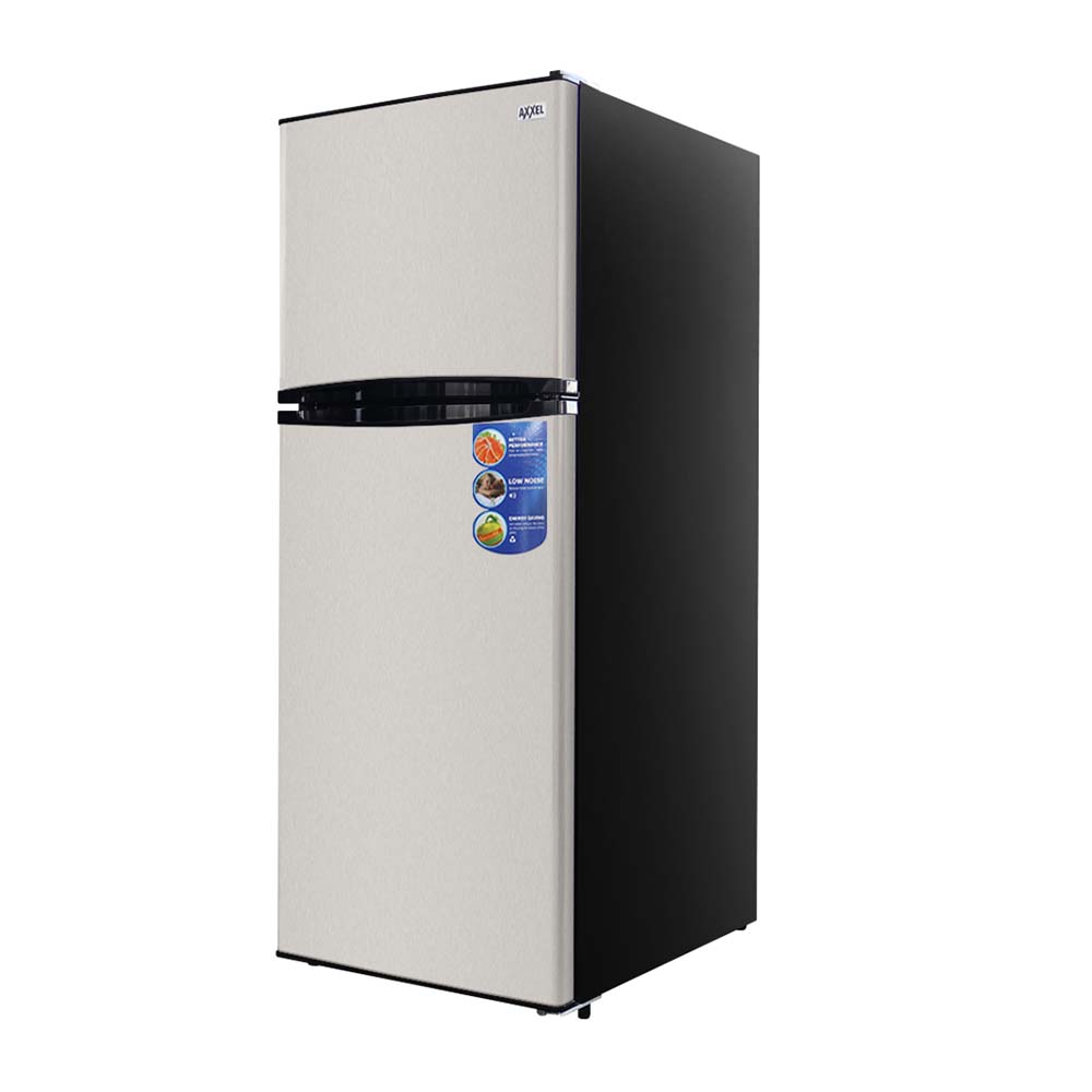 The Axxel 12 cu.ft Freezer on Top Refrigerator is a modern, energy-efficient appliance designed to meet the needs of both small and large households. With its sleek stainless steel and black finish, this refrigerator not only enhances the aesthetic of any kitchen but also provides practical and versatile storage solutions for all your refrigeration needs. With a 12 cubic feet capacity, this refrigerator offers ample storage space for fresh and frozen items. It is suitable for families or individuals who require extra room to store groceries, leftovers, and frozen goods. Despite its generous storage, the fridge maintains a compact footprint, making it suitable for a variety of kitchen spaces. The two-door design with the freezer on top is a classic and functional layout, allowing easy access to both fresh and frozen food items. The freezer compartment is spacious enough for ice trays, frozen meals, and ice cream, while the refrigerator section offers flexible storage with adjustable shelves and drawers. This refrigerator uses R600a refrigerant, an eco-friendly and highly efficient option. This refrigerant is known for its low environmental impact and helps reduce the refrigerator’s energy consumption. This ensures that the Axxel refrigerator operates smoothly while keeping your energy bills in check. One of the standout features of the Axxel refrigerator is the inclusion of adjustable shelves in the refrigerator compartment. This allows you to organize and customize the interior space to fit items of various sizes, from tall bottles to large food containers. The flexibility makes it easier to keep your food neatly organized and accessible. The refrigerator is equipped with drawers specifically designed for fruits and vegetables. These drawers help maintain the right humidity levels, ensuring that your produce stays fresh longer. The easy-to-pull-out drawers are transparent, making it simple to see what you have stored without opening them frequently. The No Frost feature ensures that you never have to manually defrost the refrigerator, preventing ice build-up inside the freezer. This makes maintenance much easier and ensures that the refrigerator runs at its most efficient, keeping your food fresh for longer. The 2W max LED lamp illuminates the refrigerator’s interior, allowing you to easily see and access your food. LED lighting is more energy-efficient compared to traditional bulbs and produces less heat, keeping the interior cooler.