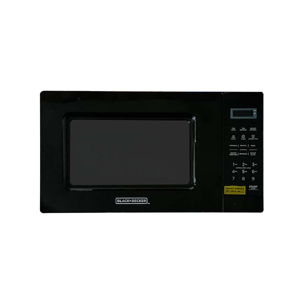 Get your favorite foods cooked easily and conveniently in this Black & Decker 0.7 Cu. ft Microwave Oven. Pre-programmed buttons for popcorn, potato, pizza, frozen vegetable, beverage and dinner plate. BLACK+DECKER Digital Microwave Oven with Turntable Push-Button Door, Child Safety Lock, 700W, 0.7 Cu.ft.