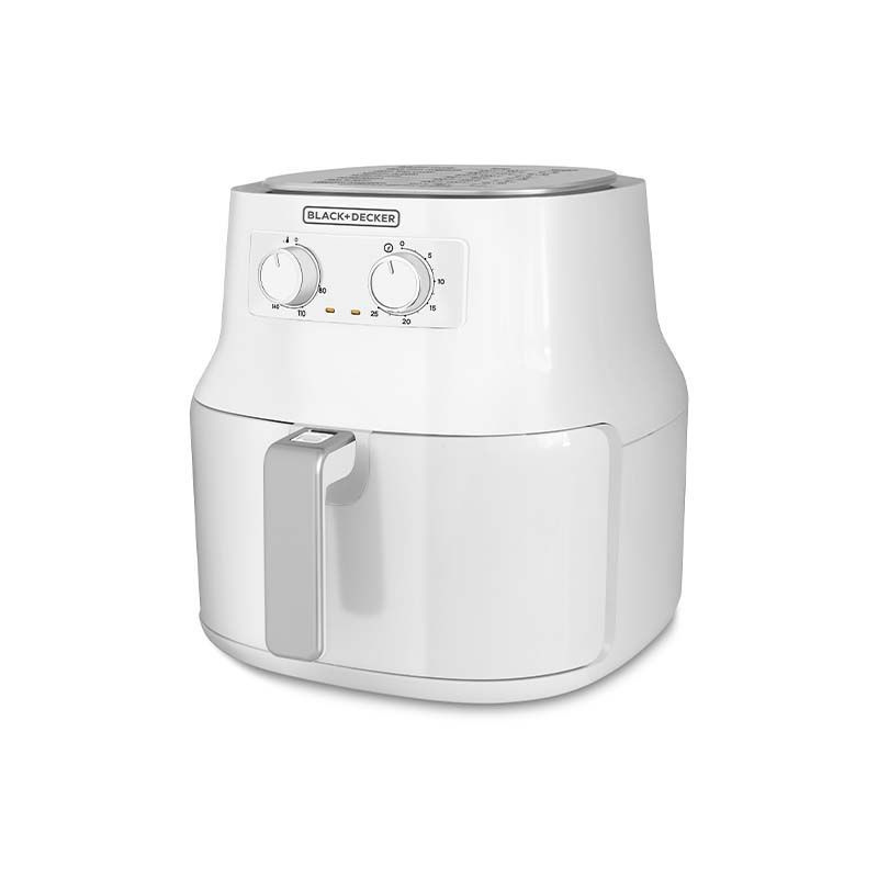 Cook guilt-free and faster with the BLACK+DECKER Healthy Air Fryer with a large 3.5-liter capacity perfect for cooking multiple servings in no time. With this revolutionary way of cooking, you can enjoy delicious fried foods without fat and with the same flavor quickly, this air fryer cooks food 45% faster, so you can enjoy your dishes in minutes. It has a removable basket with a non-stick surface for easy cleaning.