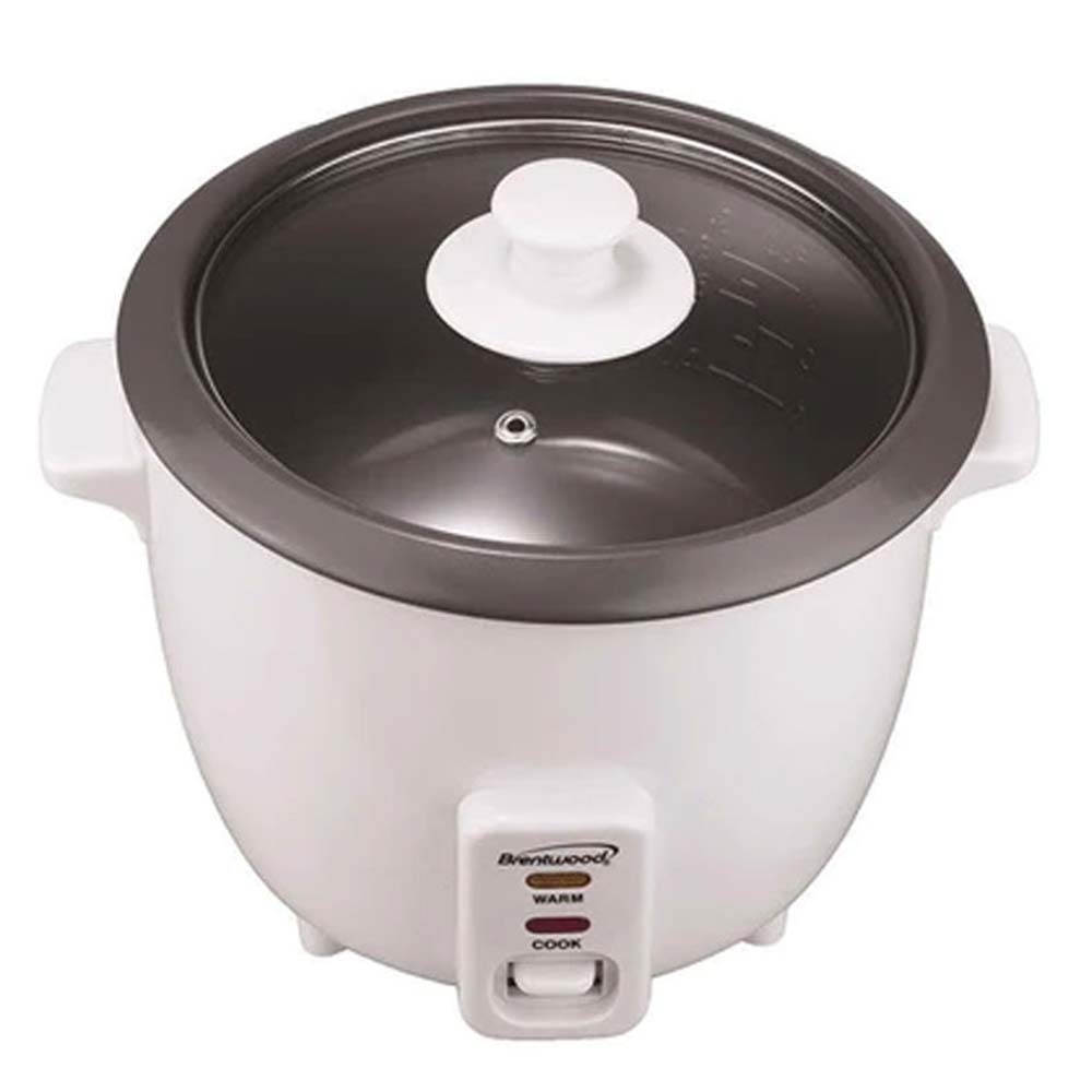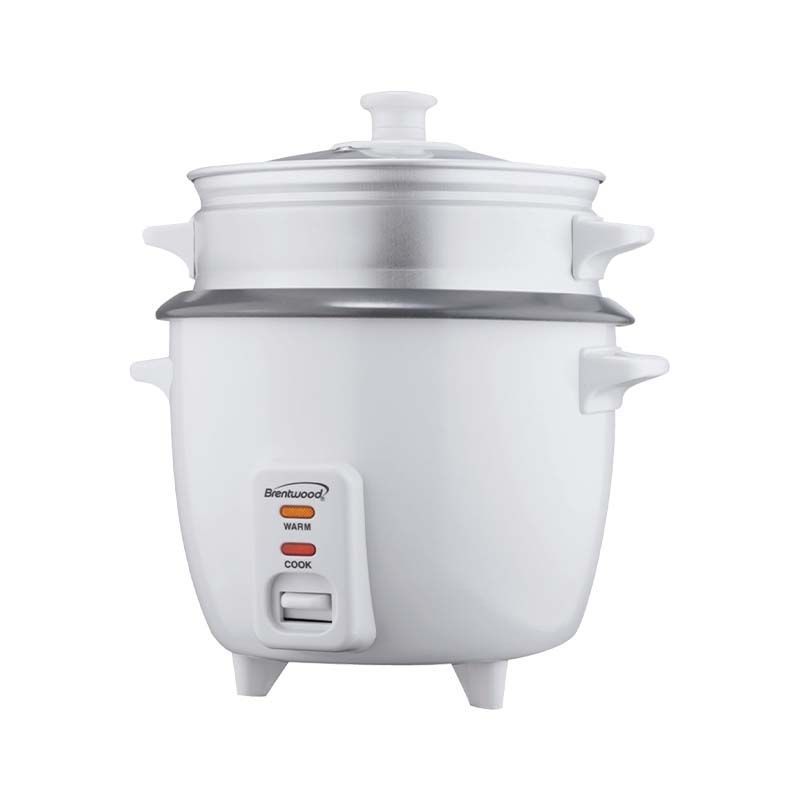 Use the powerful 500 watt Brentwood TS-180S 8-Cup Rice Cooker and Food Steamer to cook rice to perfection while meats and veggies steam on top. You can also heat and enjoy chili, soup, rice pudding, oats, quinoa and more. Hassle free, one touch operation switches over to warming once food is cooked. View food through the tempered glass lid. Removable, non-stick pot for serving and easy cleaning. Convenient power/warmer indicator light signals when turned on. We?ve included a measuring cup and serving paddle. All you need is your choice ingredients.