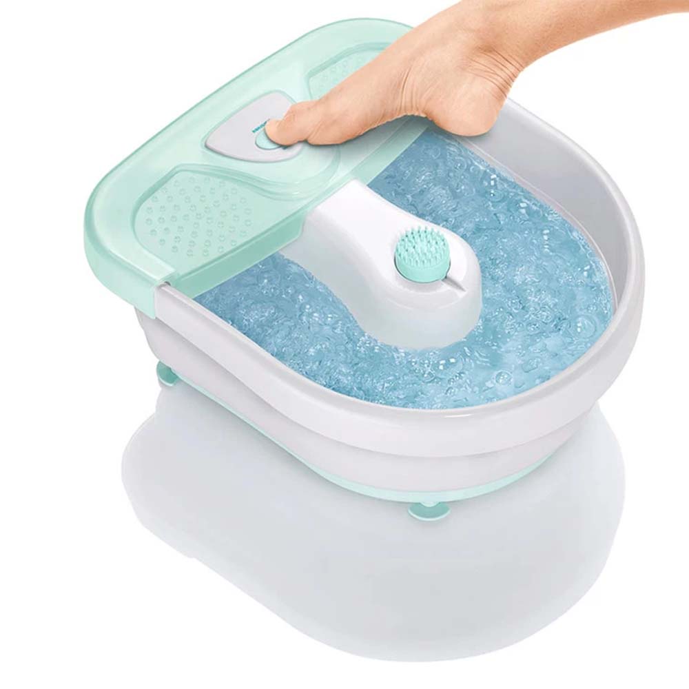Wash away the day’s cares with a soothing foot spa. One touch pad control button makes it easy to choose heat and just enough bubbles, while three pedicure attachments and two bubble strips provide a pampering touch. Relax and unwind with the Conair Foot Spa Massagers, with massaging bubbles and heat. This lightweight, portable foot spa soothes tired feet with a combination of warmth and invigorating water jets. The spa foot bath’s heat feature gently maintains an optimal water temperature for continued relaxation during treatments. A steady stream of bubbles gently stimulates and eases away aches and pains. The total relaxation device includes three different pedicure attachments that allow you to choose between single for different therapeutic treatments. Its extra deep massage heads allow for a fuller, more comprehensive foot massage. The heated foot spa also features a leg rest and spot treat function for added comfort and convenience.