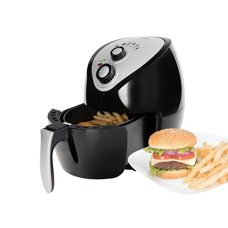 This air fryer prepares all your favorite fried snacks and meals in less time and with fewer calories, making snack time and mealtime healthier. The rapid hot air circulating system fries food faster, saving energy and money, and it uses little to no oil depending on the food prepared meaning you can have fried foods guilt free. The non-stick food basket with holder makes the transfer and clean-up mess-free, and the adjustable 30-minute timer with auto shut-off feature means perfectly cooked food every time. The convenient size fits well on any countertop, and the sleek design complements any d?cor. Indulge in all your favorite foods again while still maintaining your healthier lifestyle.