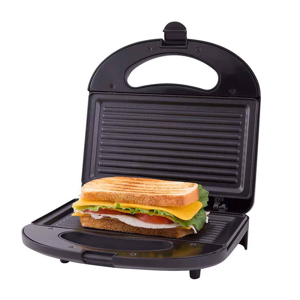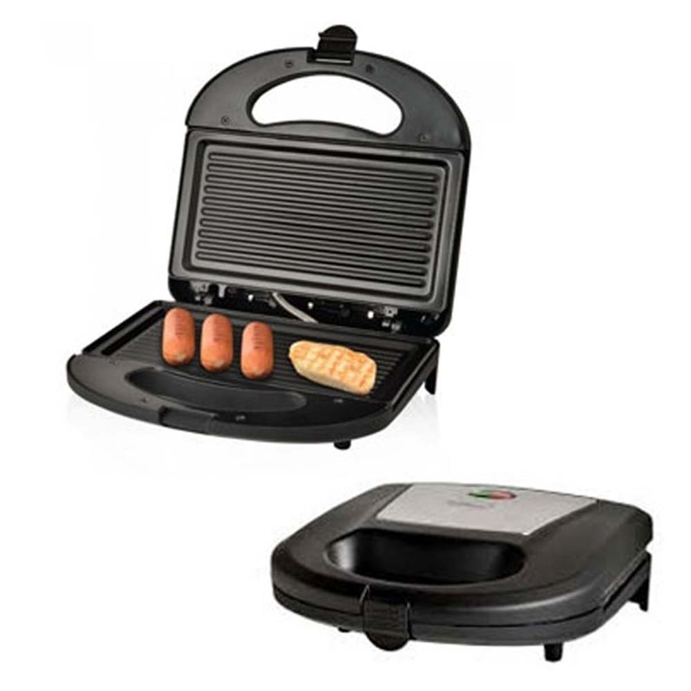 With this multi-function, elegant stainless steel design sandwich maker you can make delicious sandwiches or use the grill plates to grill food. Fitted with 760 watts of power, you can be sure to have delicious mouth-watering sandwiches within minutes, while the non-stick plates make sure that your sandwich pulls cleanly off. With it?s cool touch housing, you can rest easy that burn accidents can be mitigated, while its compact design allows for easy storage.