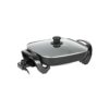 The Premium Levella 12″ family-size electric skillet is perfect for making your favorite breakfast, lunch, snack, or dinner meal. It is also perfect for those large gatherings when you need extra cooking space. This skillet is a breeze to clean with its non-stick coating and it is fully immersible and dishwasher safe, without temperature control. The high domed glass lid allows for extra cooking space in the skillet. Adjustable temperature control with power-on light, cool touch handles, and knob and skid-resistant feet round out this extremely versatile skillet and make it a must-have for your kitchen.