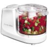 Reduce prep time in the kitchen with this convenient 1.5 cup capacity food chopper. The small but powerful chopper makes easy work of vegetables, fruits, herbs, cheese, nuts, chocolate, and more. It basically accomplishes the same functions as a full-size food processor, but without having to haul out the big machine. Its pulse function sets the blade spinning and offers exceptional control over consistency, and the stainless-steel processing blade can be removed for thorough cleaning. Other highlights include a transparent work bowl, a stable base, and a modern look that nicely complements any kitchen decor.
