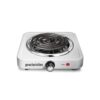Not only does the Proctor Silex? Single Burner Cooktop heat up quickly with 1200 watts, it provides a range of heating options from high to warm for maximum cooking and serving versatility. It’s perfect for quickly boiling water for tea or pour-over coffee, and it’s ideal anywhere you need extra cooking space or a place to keep food warm until serving time. Since it’s portable and compact, it’s easy to move from place to place and even easier to store. Whether you need an extra burner for holiday cooking, are doing home renovations or plan to go camping, the Proctor Silex Single Burner Cooktop gives you all the cooking convenience you need. It works with all types of cookware and since the coil is hinged, you can lift it up to quickly wipe spills from the plate underneath. Convenient nonslip rubber feet grip surfaces and your kitchen countertop to help prevent sliding and the power indicator light lets you know when the cooktop is plugged in and ready to use.