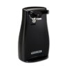 The Proctor Silex Power Opener Can Opener is easy to clean with a washable cutting lever that easily twists off. The can opener is packed with convenient features that make your life easier. It includes a built-in knife sharpener, located in the back of the opener, to help keep your kitchen knives their sharpest without the need for a separate sharpening tool. And the cord neatly pushes into a storage area at the base of the opener to reduce countertop clutter. The guide post makes it easier to align cans too, so you can open cans the first time. No struggling to open cans. Besides being easy to use, this electric can opener also has a convenient auto shutoff feature to free your hands for other kitchen tasks. This electric can opener is versatile and designed to open many different size cans.