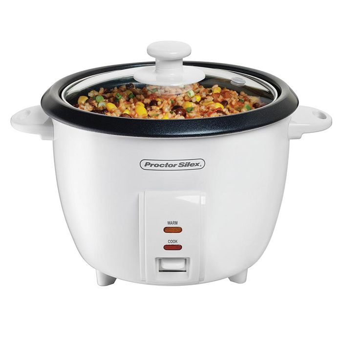 Cook rice, quinoa or barley without having to boil water or set a timer. With the Proctor-Silex Rice Cooker, all you have to do is place the ingredients in the nonstick pot, turn it on, and let your favorite grains cook to perfection.Proctor-Silex Rice Cooker Make fluffy, delicious rice quickly and conveniently. Cook rice, quinoa or barley without having to boil water or set a timer. With the Proctor-Silex Rice Cooker, all you have to do is place the ingredients in the nonstick pot, turn it on, and let your favorite grains cook to perfection. Use the included steam basket to cook everything from salmon to zucchini. The cooker automatically shifts to Warm once the cooking cycle is complete. And with a nonstick pot and dishwasher-safe accessories, cleanup is simple.