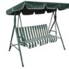 Enjoy comfort and relaxation with this swing chair build with powder coated steel frames. It is covered with polyester fabric and can support up to 3 people at once.
